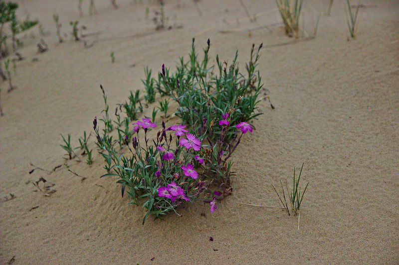 В песках тут часто встречались сосны кедровые. Шишки еще не созрели. Однако многие были погрызены птицами. Тоже решили попробовать эти шишки. Хоть они и смолистые, но сами орешки по вкусу уже были нормальные. Вечером обжигали шишки на костре и ели орешки.