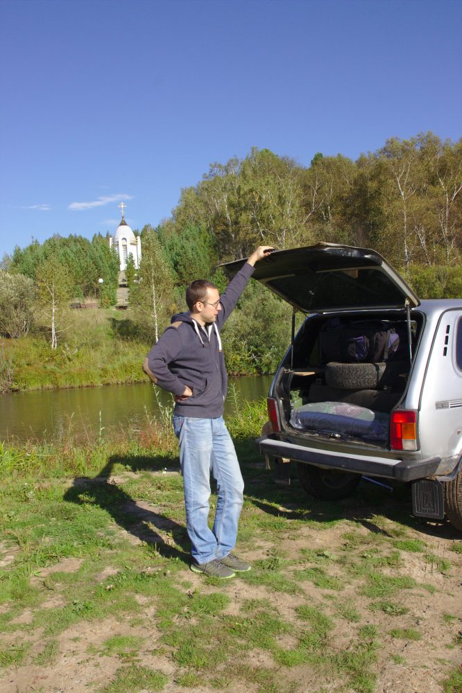 Раскладываясь в первый раз на отдых, самые важные вещи переложили на передние места. Но не столь ценные вещи сложили под машиной: запасное колесо, лопата, трос, небольшой запас всяких жидкостей от Нифки. А так же в пакетике аккуратно оставили некоторые продукты, такие как сыр, колбаса, которым будет лучше храниться в более прохладном месте.