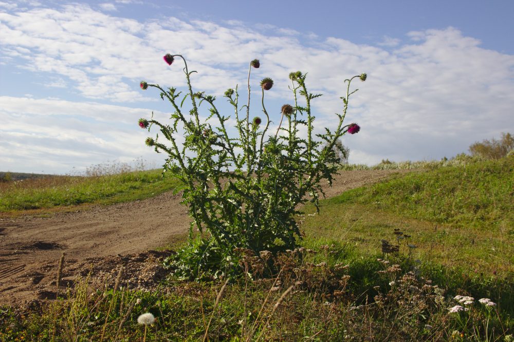У выезда на дорогу к мостику, Маша захотела сфотографировать цветок и попросила остановиться.