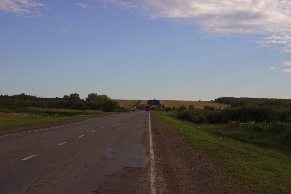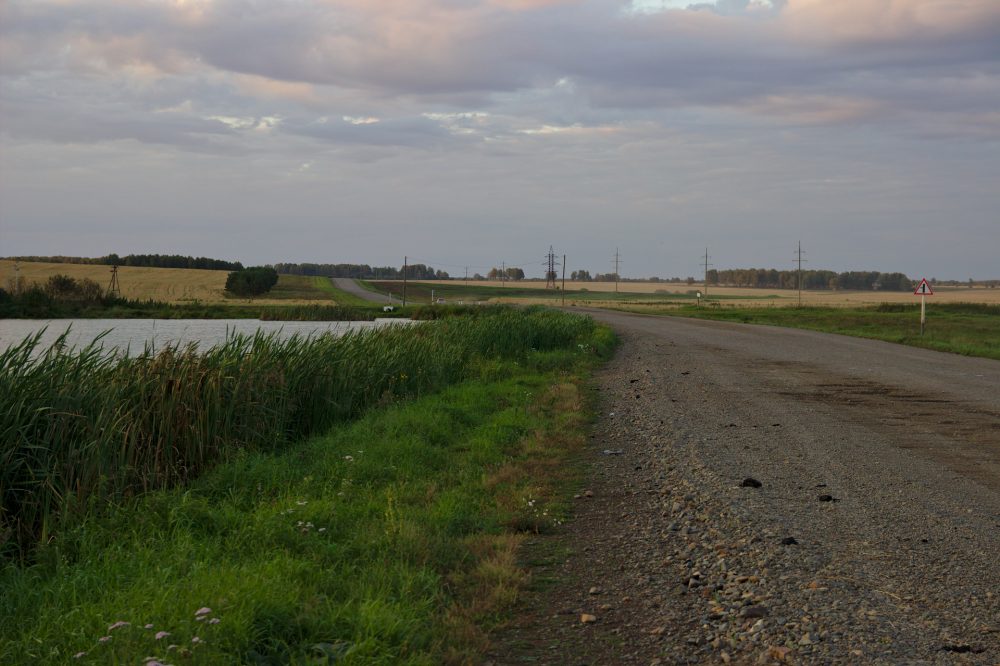 Остановились на какой-то небольшой стояночке на окраине города, перекусили, передохнули и решили как в первый день просто ехать пока чувствую себя нормально. Взяли направление до Ужура. Здесь в дали от федеральных трасс с трафиком стало ещё комфортнее — можно было никого не встретить даже за пол часа. Ужур проехали без остановки.