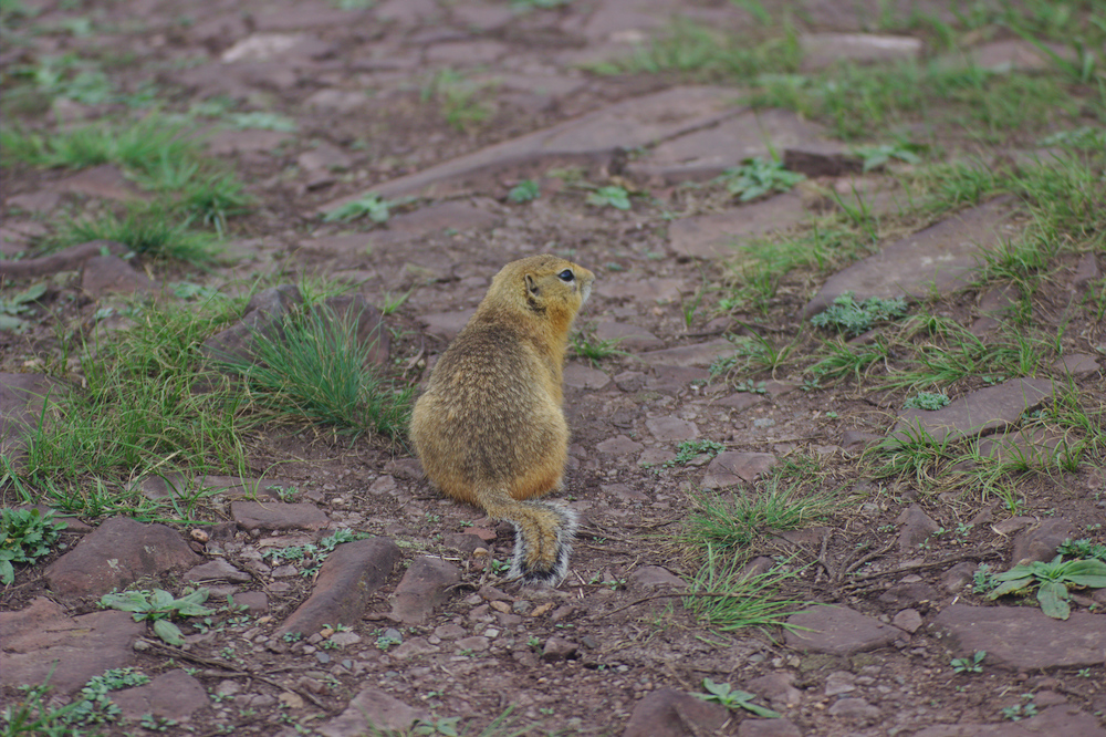Поехали покорять третий сундук. Удача от нас отвернулась с самого начала этой затеи. Первым тревожным сигналом был суслик преградивший дорогу. Просто не было никаких шансов ни объехать его, ни проехать мимо. Оставалось только доставать фотоаппарат и фотографировать дичку.