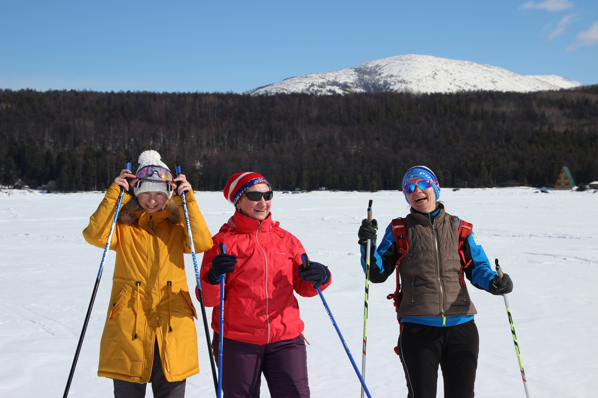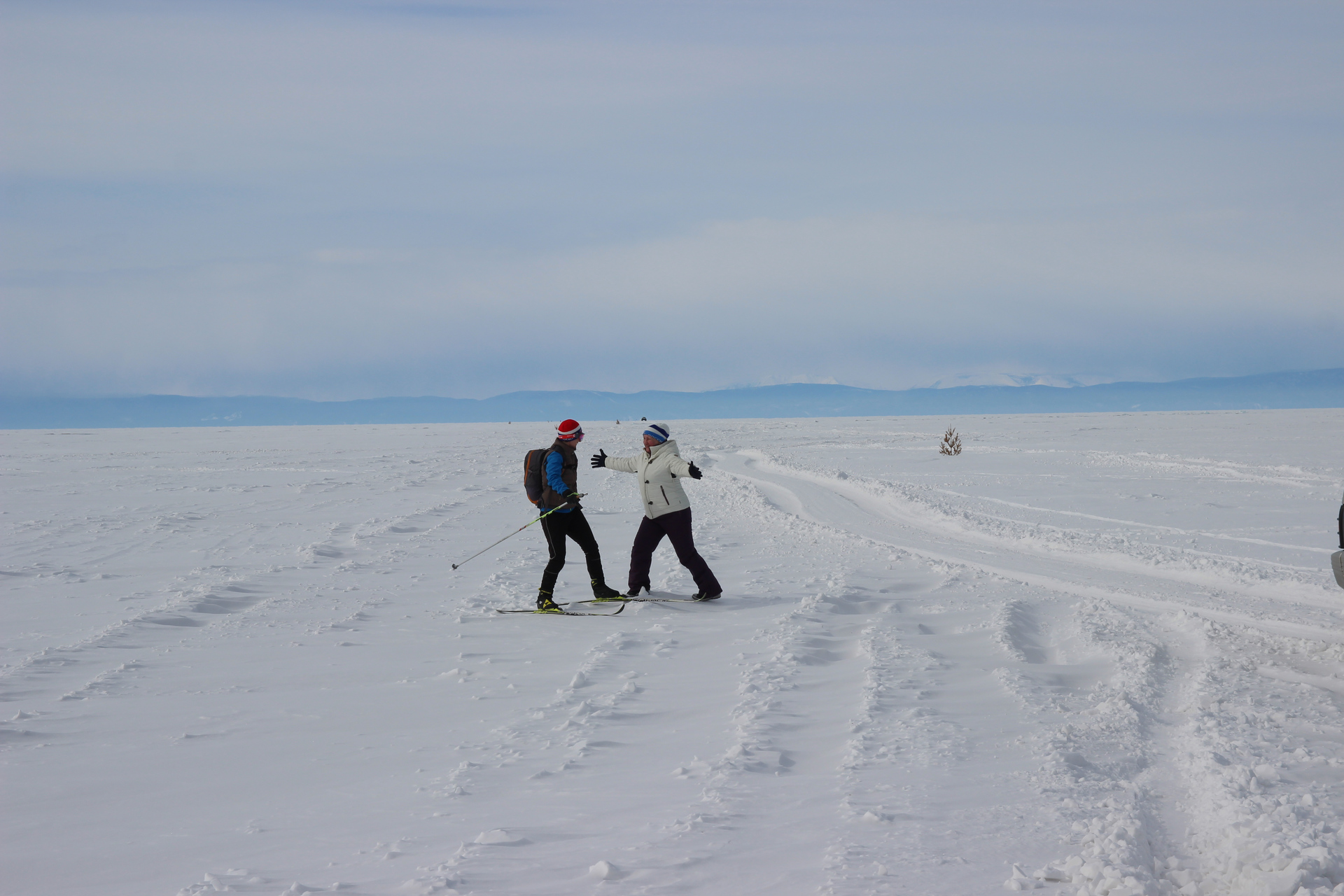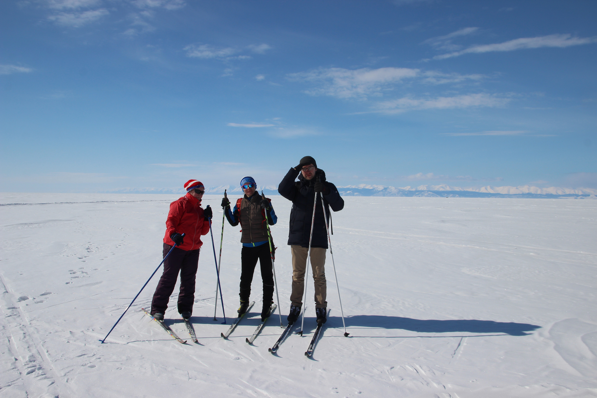 Основная цель — горячий источник Хакусы. Основной повод — марафон лыжников через весь Байкал и обратно. Мы с Машей и Светой — группа поддержки. И мы болеем за Марину (Машину маму) — самая быстрая лыжница.